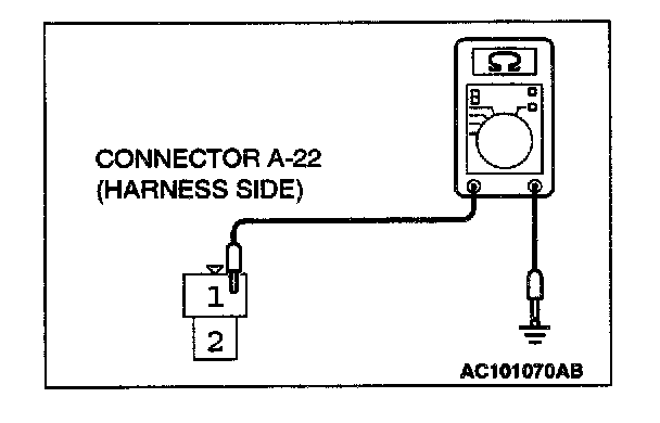 1. Disconnect windshield washer motor connector A-22, and check at windshield washer motor connector side.