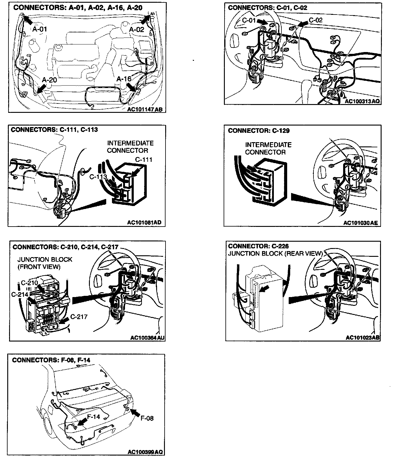 NOTE: Also check junction block connector C-210 and intermediate connector C-129. If junction block connector C-210 or intermediate connector C-129 is damaged, repair or replace the connector as described in Harness Connector Inspection.