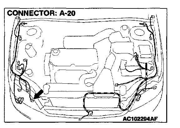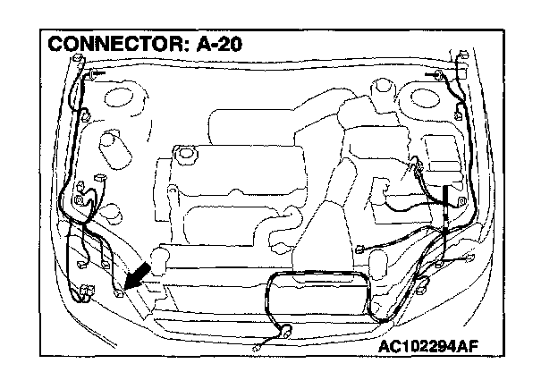 STEP 14. Check front turn-signal light (RH) connector A-20 for damage.