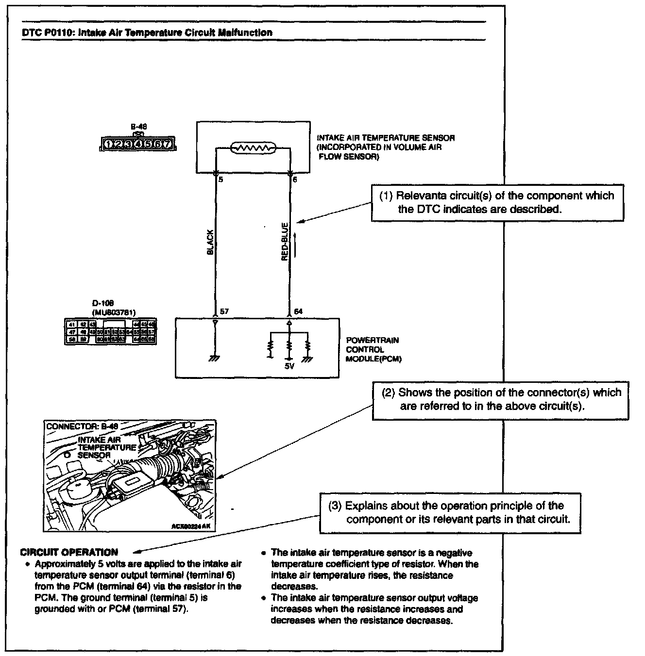 The causes of many of problems occurring in electric circuitry are generally the connectors, components, the ECU and the harnesses between connectors in that order. These inspection procedures follow this order. They first try to discover a problem with a connector or a detective component.