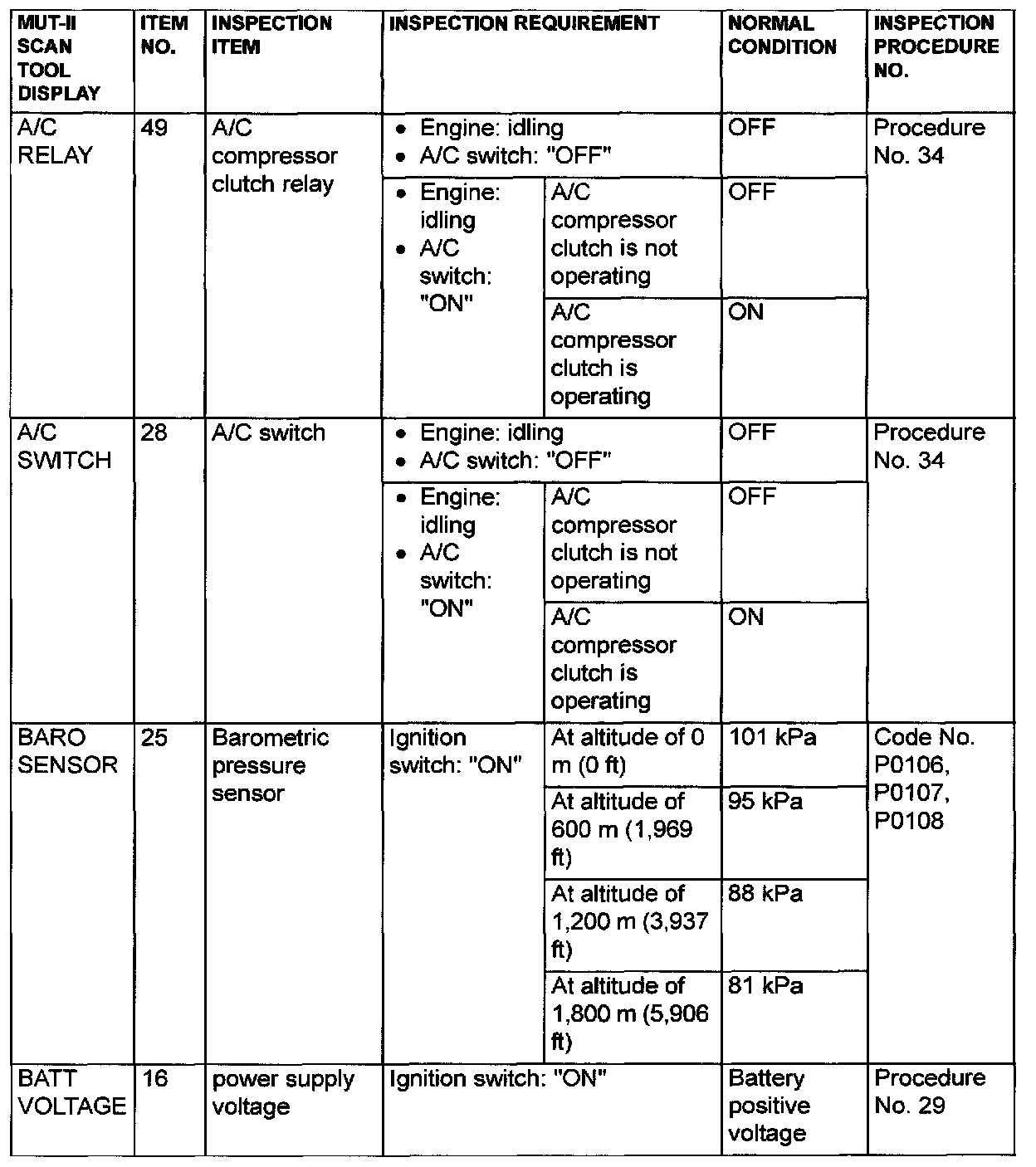 NOTE: *6: GST items. [Data list items consist of MUT-II items and GST items. GST items can be accessed through the use of a general scan tool (GST). When MUT-II (MB991502) is used, MUT-II items appear alphabetically; then, GST items appear alphabetically The black and white characters of the GST items are inverted from the MUT-II items]