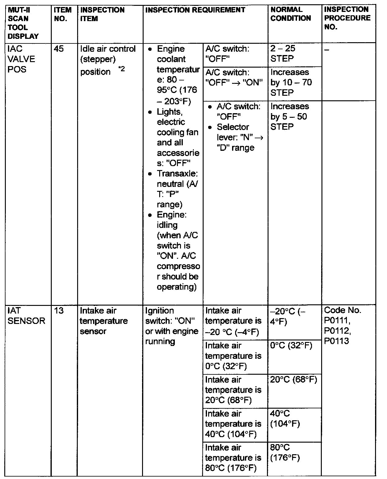 NOTE: *1: If the idle speed is lower than the standard value on a very cold engine [approximately -20 °C (-4 °F)] even when the IAC motor is fully opened, the air volume limiter built in the throttle body could be defective.
