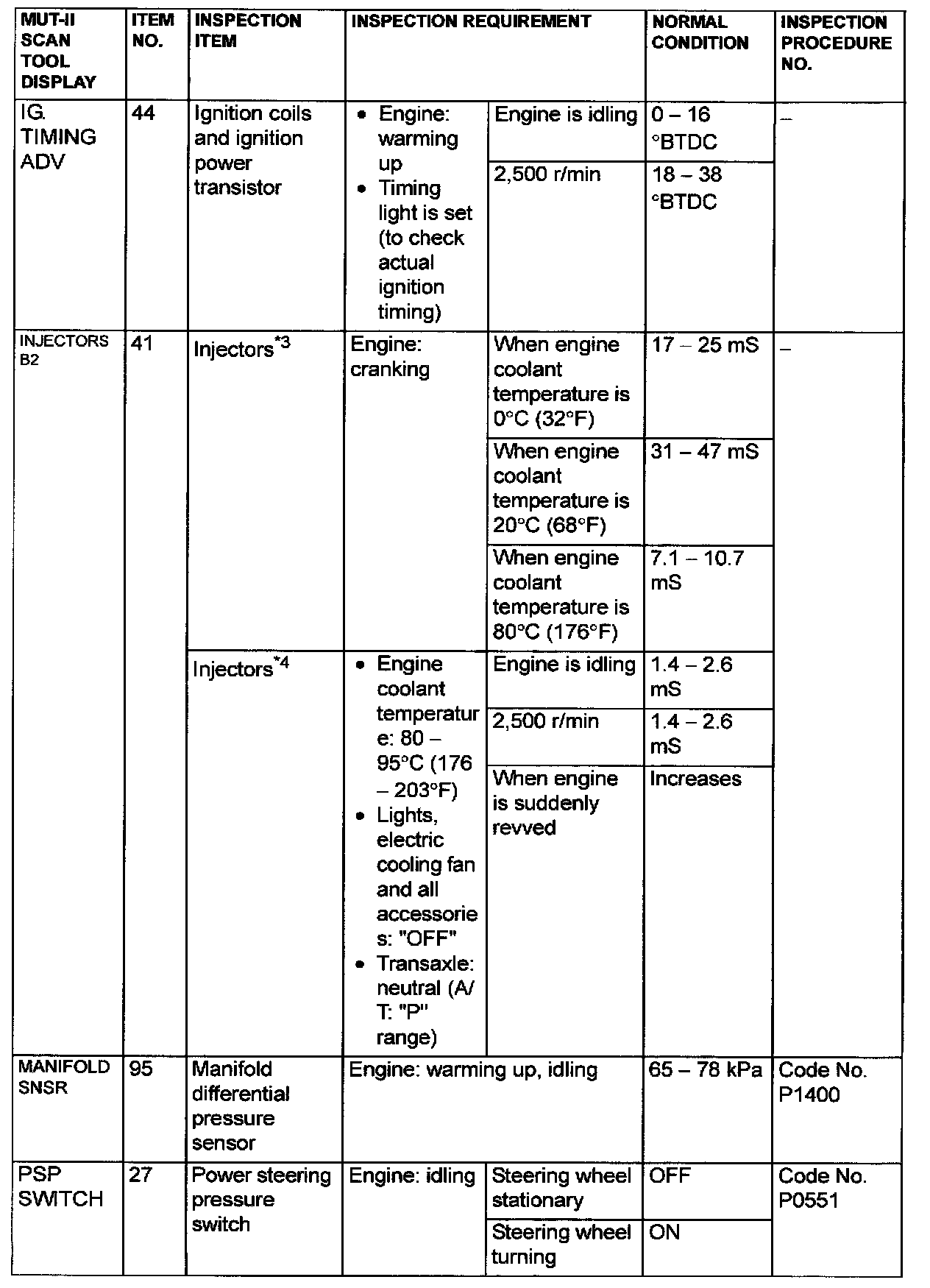 NOTE: *4: In a new vehicle [driven approximately 500 km (311 mile) or less], the injector drive time is sometimes 10% longer than the standard time.