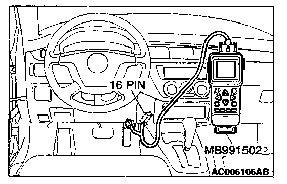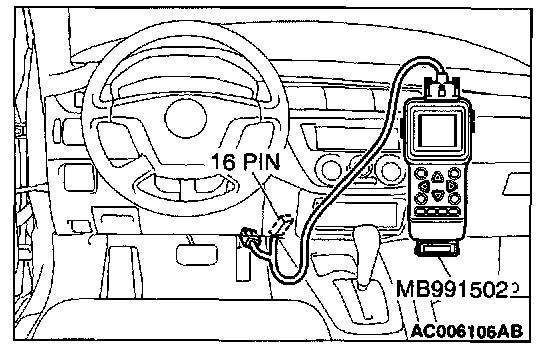 1. Connect scan tool MB991502 to the data link connector.