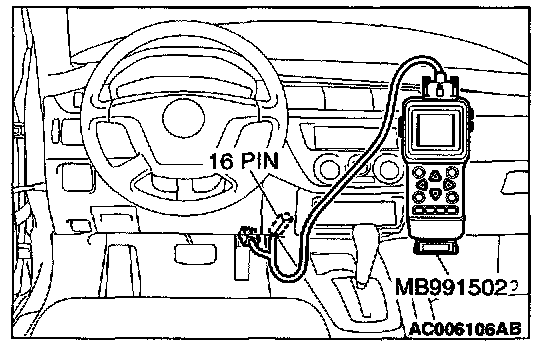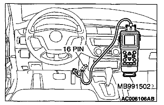 1. Connect scan tool MB991502 to the data link connector.