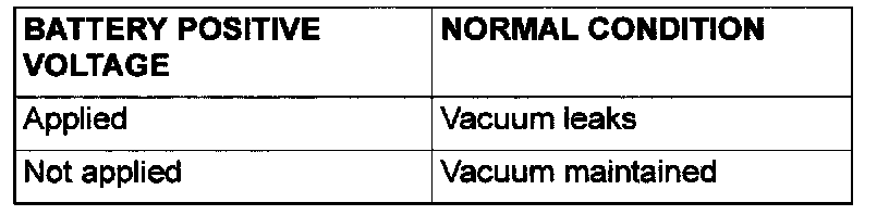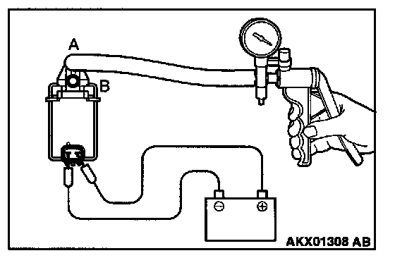 4. Check airtightness by applying a vacuum with voltage applied directly from the battery to the EVAP purge solenoid valve and without applying voltage.