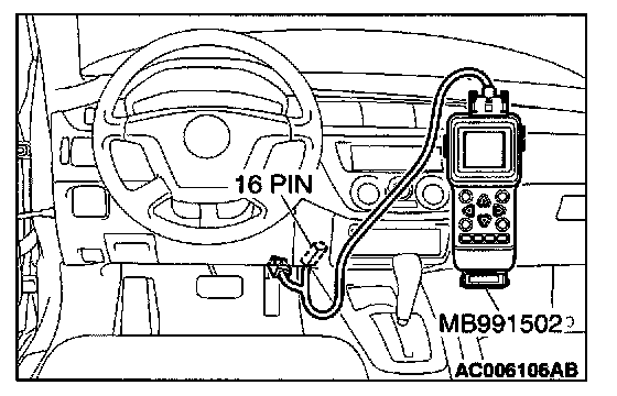 2. Connect scan tool MB991502 to the data link connector (16- pin).