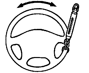 4. If the free play still exceeds the limit value, set the steering wheel straight ahead with the engine stopped. Load 5 Nm (1.1 pound) towards the steering wheel circumference and check the play.