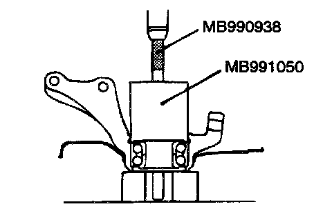 3. Press-in the bearing by using special tools MB990938, MB991050.