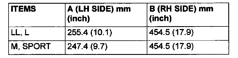 Standard value (A): 85 ± 3 mm (3.3 ± 0.12 inch)