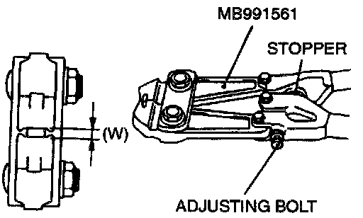 5. Turn the adjusting bolt on special tool MB991561 so that the size of the opening (W) is at the standard value.