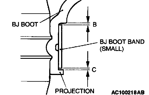 Position the BJ boot band (small) so that there are even clearance at either end (B and C).