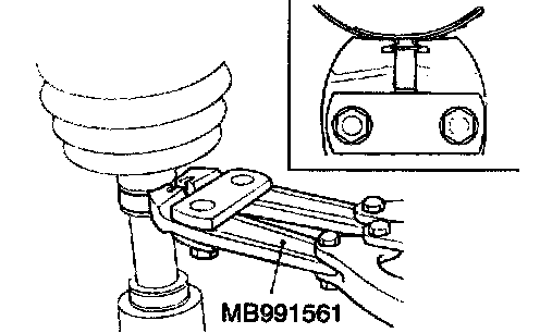 ^ Crimp the boot band until the special tool MB991561 touches the stopper.