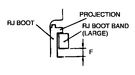 Place the RJ boot band (large) against the projection at the edge of the boot, and then secure it so that there is a clearance left as shown by (F) in the illustration.