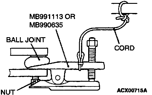 Use special tool MB991113 or MB990635 to disconnect the lower arm ball joint or the tie rod end from the knuckle.