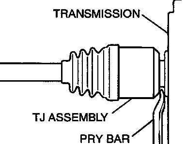^ Do not pull on the driveshaft; doing so will damage the TJ; be sure to use the pry bar.