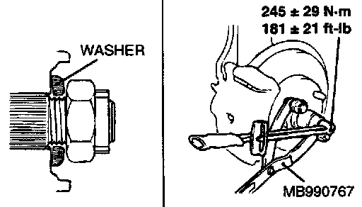 2. Using special tool MB990767, tighten the driveshaft nut.