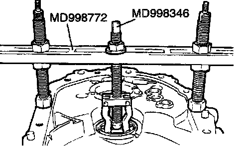 2. Turn the nut on special tool MD998346 to pull up on the tool and take out the outer race.