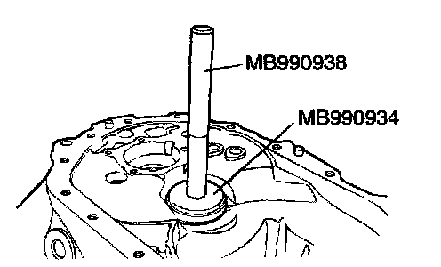 2. Using special tools MB990938 and MB990934, press fit the outer race into the clutch housing.