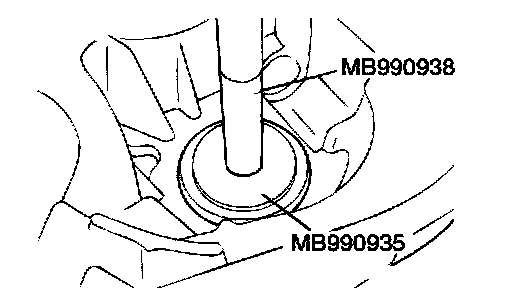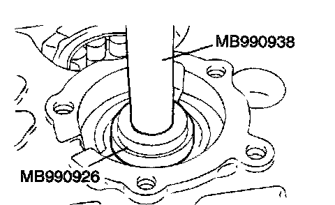 2. Using special tools MB990938, MB990926, press fit the oil seal into the clutch housing.