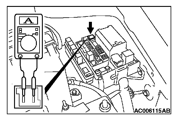 POWER WINDOW OPERATING CURRENT CHECK1. Remove the power window fuse and connect an ammeter as shown in the illustration.