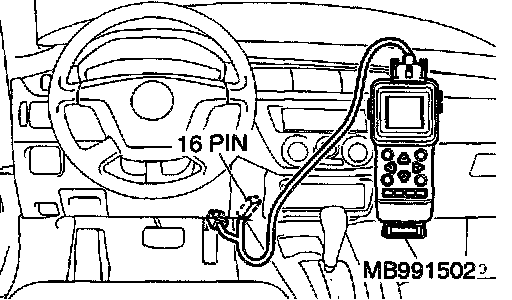 1. Connect scan tool MB991502 to the data link connector.