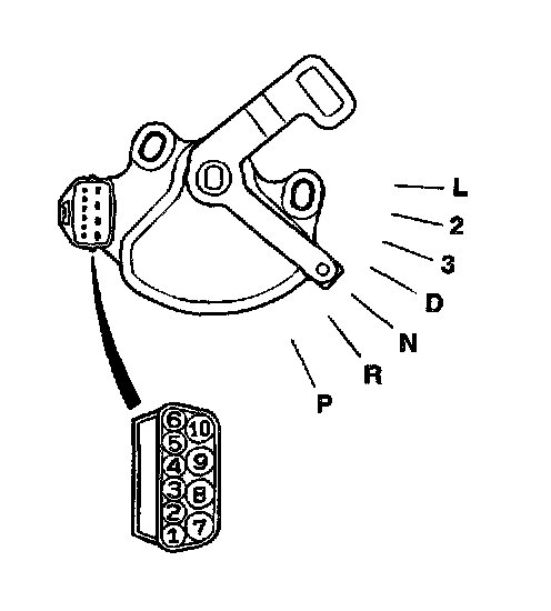 ^ Move the selector lever to "P," "R," "N," "D," "3," "27" "L," positions to confirm whether shown on the scan tool.