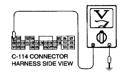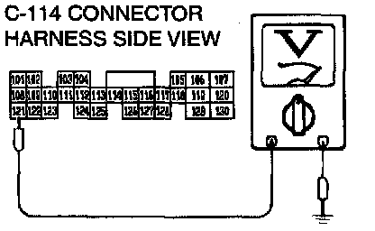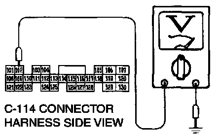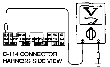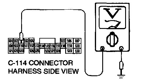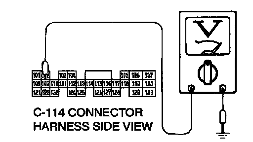 STEP 8. Check the switch output voltage at PCM connector C-114 by backprobing.