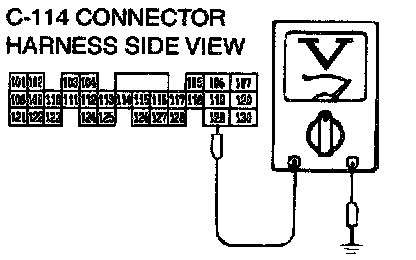 STEP 3. Check the solenoid valve output voltage at PCM connector C-114 by backprobing.