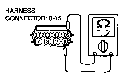 1. Disconnect connector B-15 and measure at the solenoid valve side.