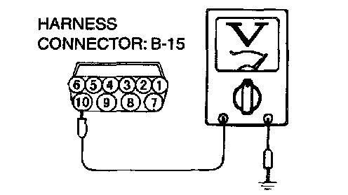 STEP 11. Check the power supply voltage at A/T control solenoid valve assembly connector B-15.