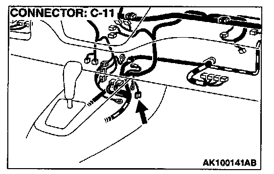 1. Disconnect the heated oxygen sensor (rear) connector C-11 and connect test harness special tool, MB991223, to the connector on the heated oxygen sensor (front) side.