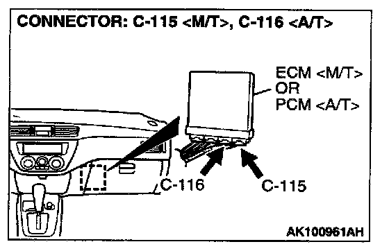 STEP 3. Check connector C-11 at heated oxygen sensor (rear) and connector C-115 at ECM