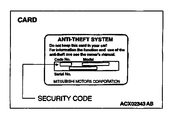 3. When the radio and CD player is replaced: Use the security code on the cards attached to the upper surface of the replacement radio and CD player.