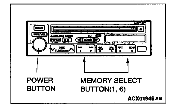 Procedure For Input of Anti-Theft Code For Anti-Theft SystemThe radio and CD player do not work under the following conditions: Power supply to the radio and CD player has been suspended for more than an hour continuously by removing the cable from the battery terminal or disconnecting the harness connectors.