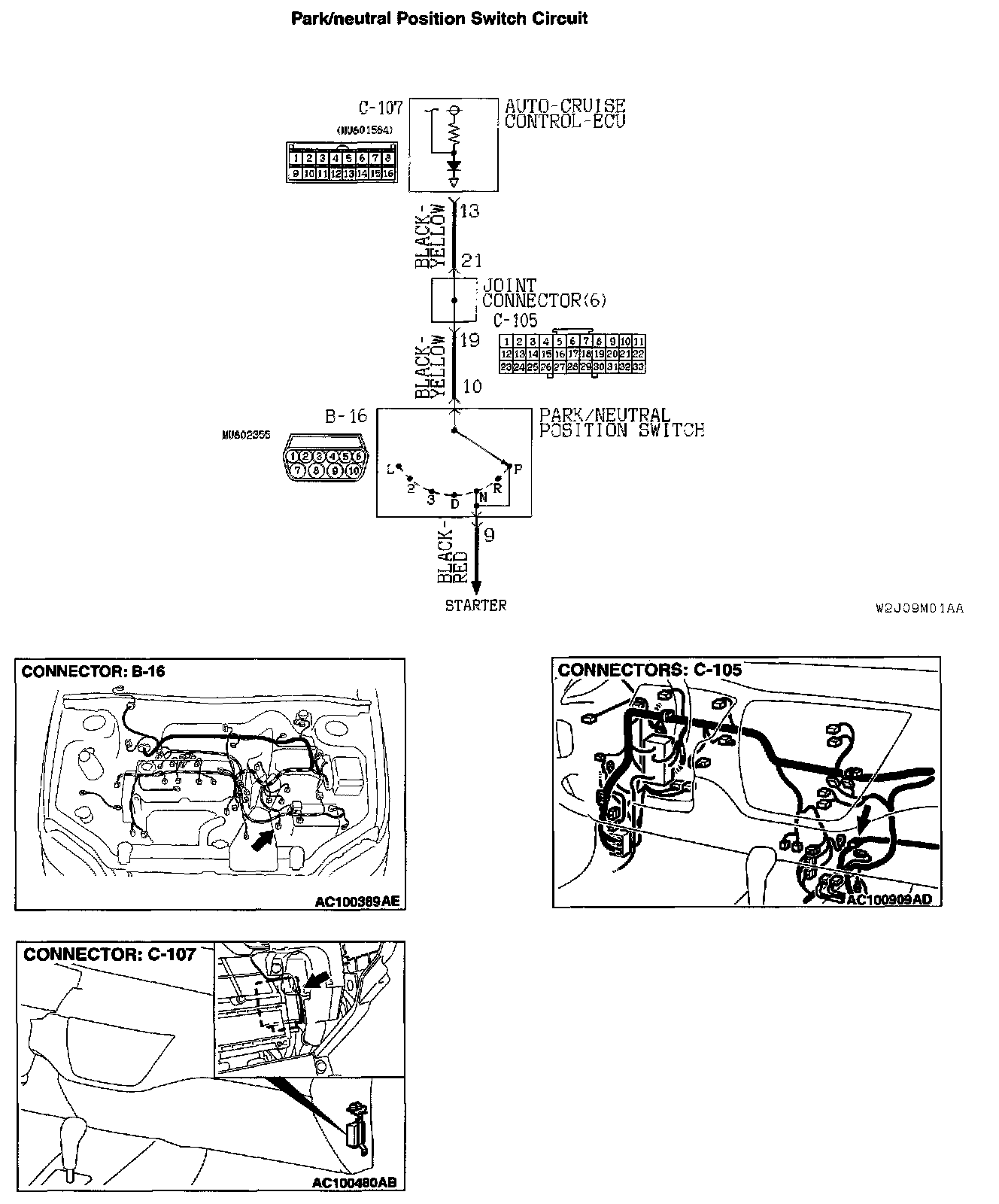 STEP 2. park/neutral position switch connector B-16.