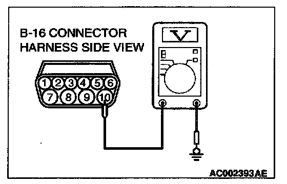 STEP 1. Check the output circuit voltage at park/neutral position switch connector B-16 by backprobing.