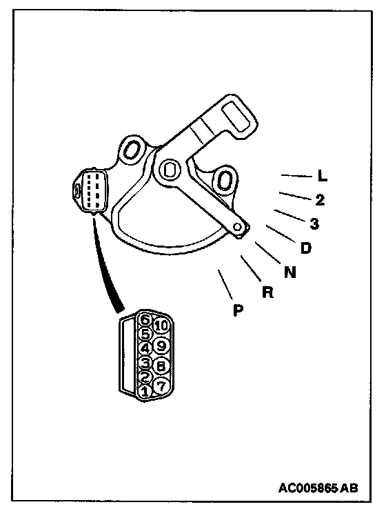 2. Measure the continuity park/neutral position switch connector terminals.
