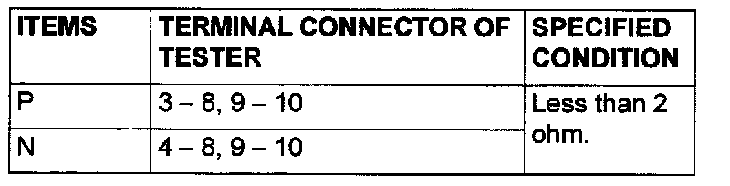 - Voltage should be battery positive voltage. (When select lever is in a position other than "N" range.)