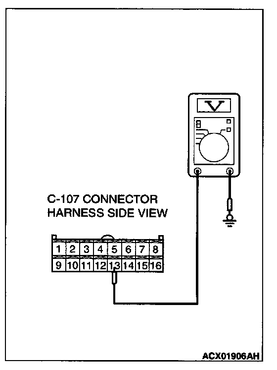 3. Measure the voltage between terminal 13 and ground by backprobing.