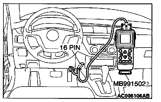 CAUTION: To prevent damage to scan tool MB991502, always turn the ignition switch to the "LOCK" (OFF) position before connecting or disconnecting scan tool MB991502.