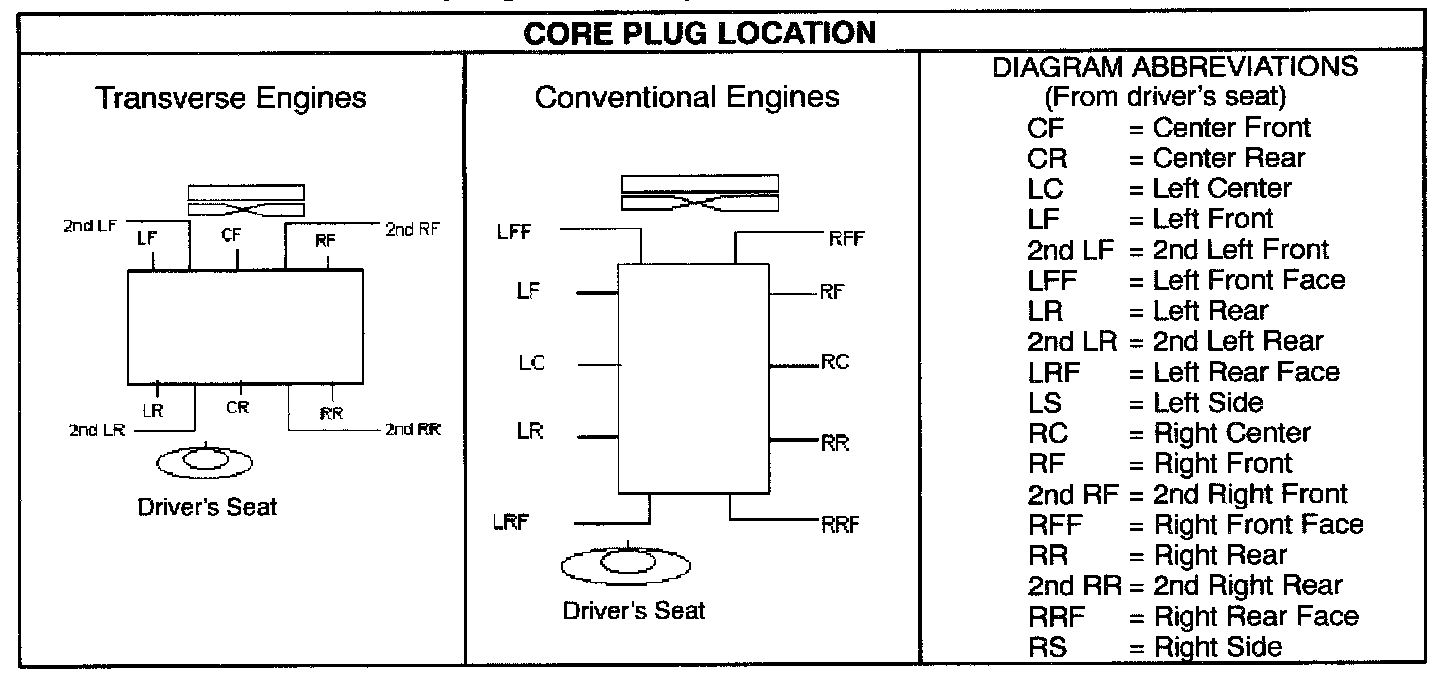 Engine Core Plug Locations