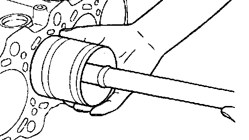 4. Compress the piston rings tightly with a suitable ring compression tool, then press the piston and connecting rod fully into the cylinder. Do not strike the piston hard since the piston rings may break and the crank pin may be nicked.
