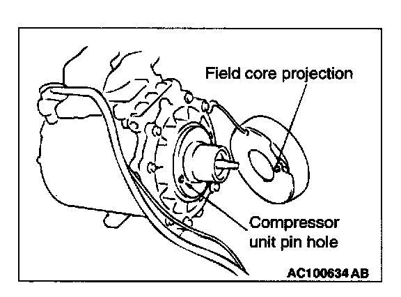 Line up the pin hole on the compressor unit with the field core projection and attach.