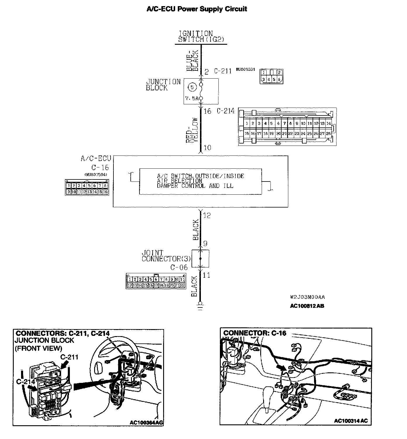STEP 3. Check the wiring harness between A/C-ECU connector C-16 and the ignition switch (IG2).
