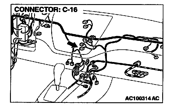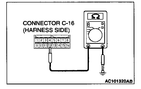 STEP 4. Measure the resistance at A/C-ECU connector C-16 in order to check the ground circuit to the A/C-ECU.