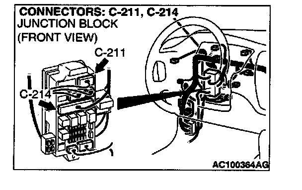 NOTE: Also check junction block connectors C-211 and C-214. If junction block connectors C-211 or C-214 is damaged, repair or replace the connector as described in Harness Connector Inspection.