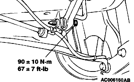 CAUTION: To prevent bushings from breakage, the connecting bolt should be temporarily tightened, and then fully tightened with the vehicle on the ground in the unladen condition.