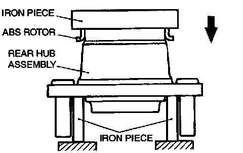 Use special tools MD998812, MD998813, MD998815 and MD998801 to press out ABS rotor from the rear hub assembly.