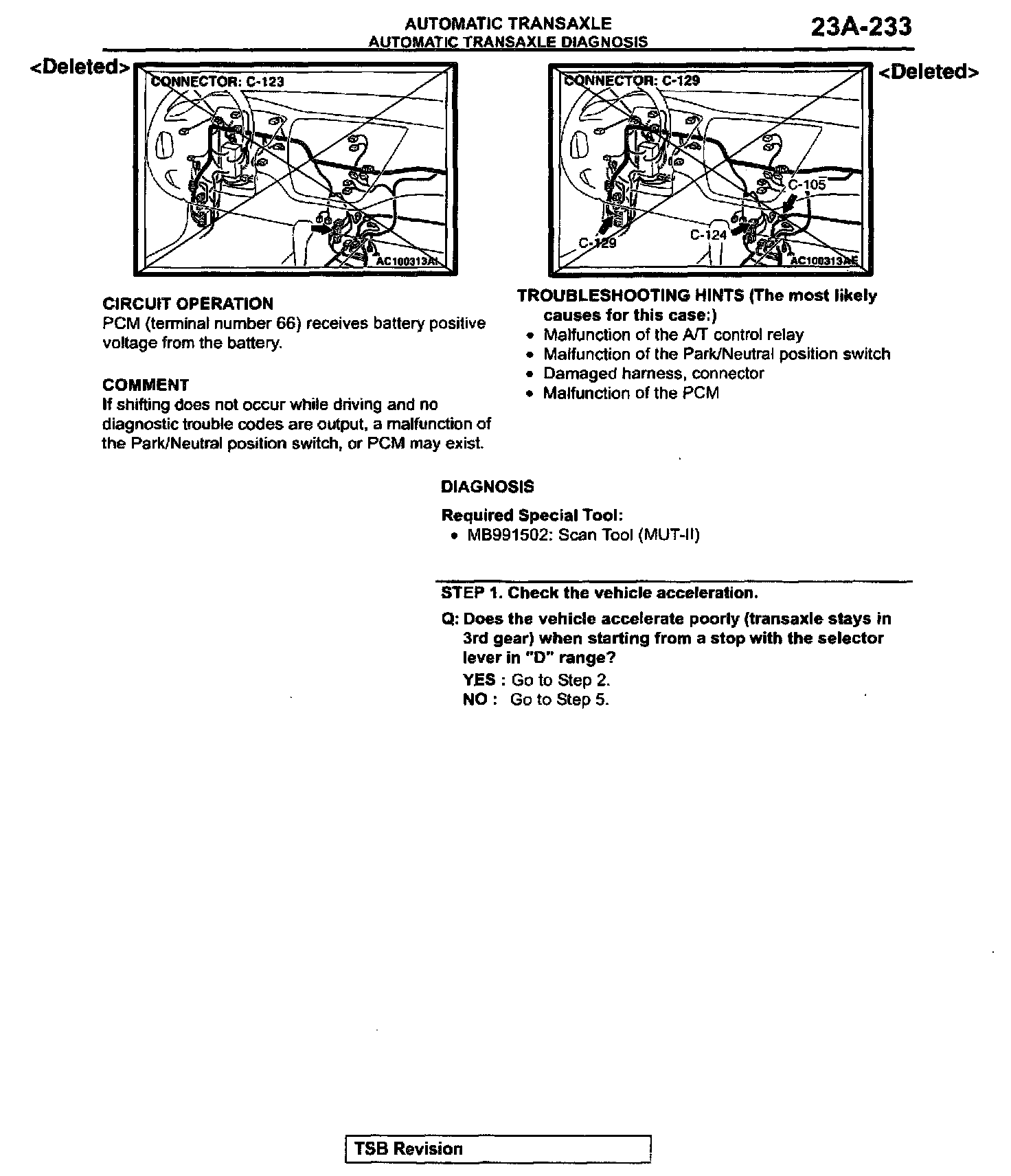 Write the TSB revision number of this bulletin in the "TSB Revision" box at the bottom of the affected service manual page.